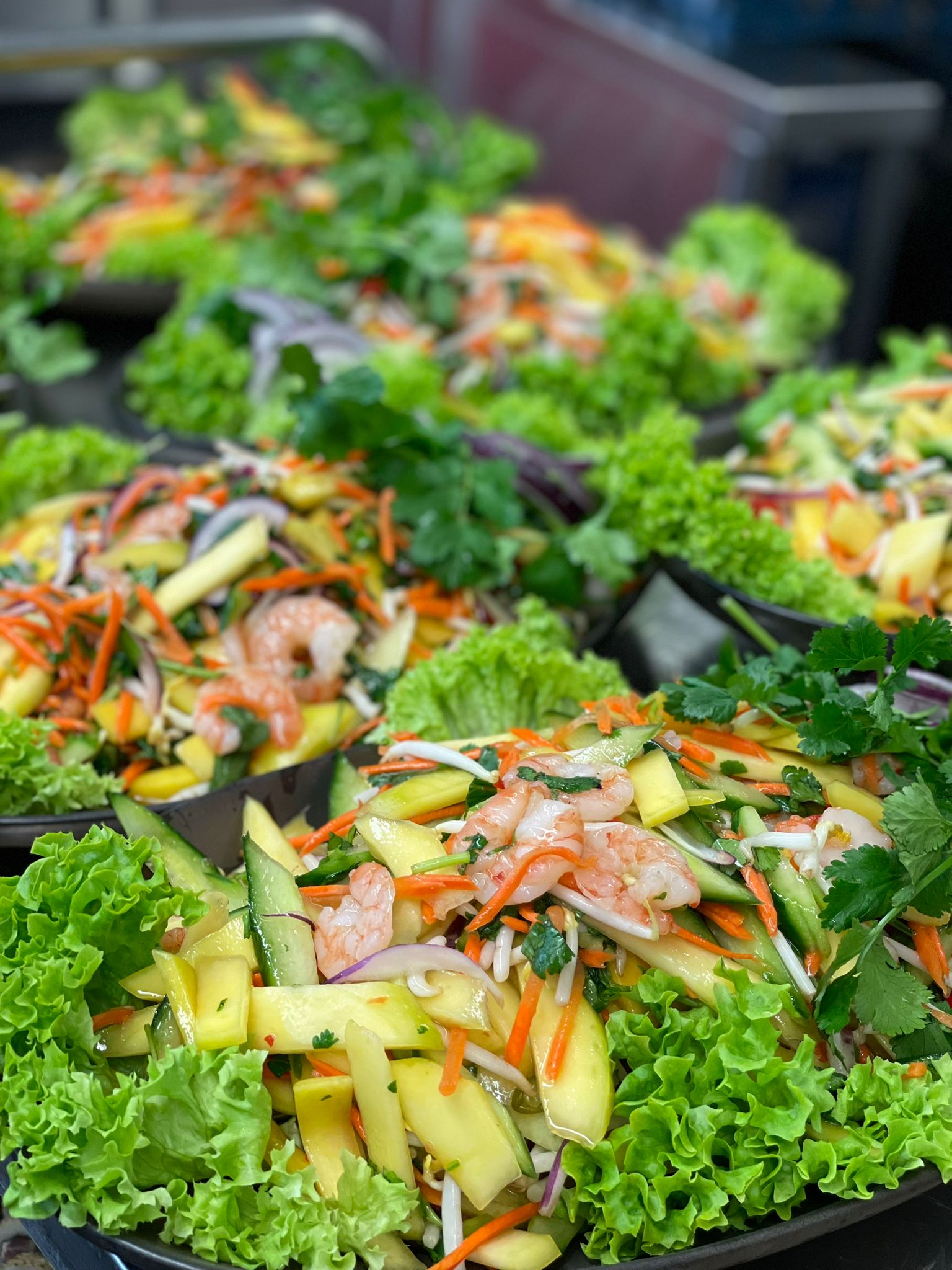 - - Salate (gemischter Salat mit Pute, Mangosalat, Glasnudelsalat, Rindfleischsalat, Seetang)