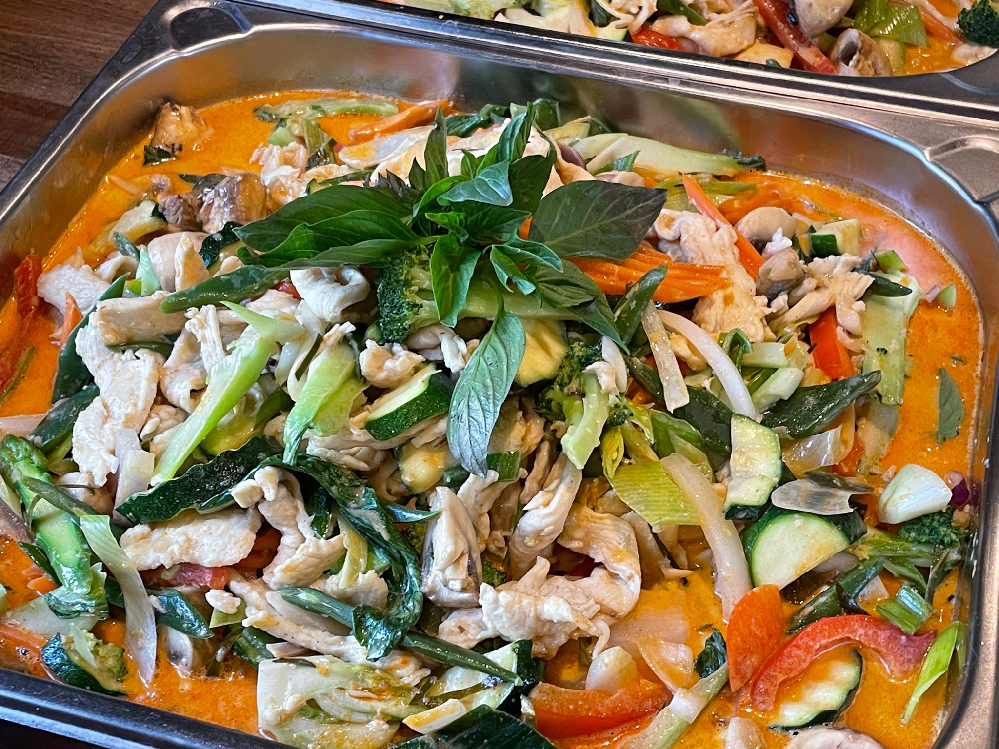 - - rotes cremiges Thai-Curry mit Gemüse & Rinderfilet