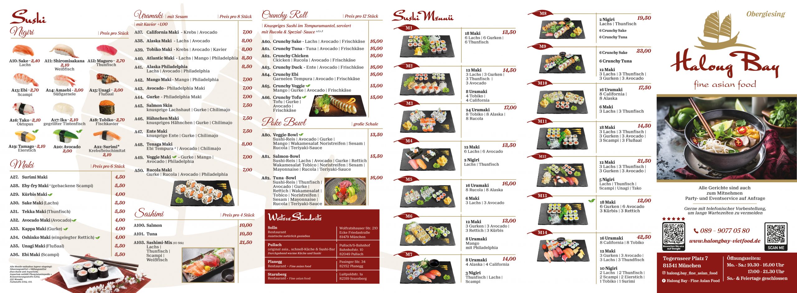 Alle Menü enthalten Ingwer eingelegt: Säuerungsmittel + Süßungsmittel (Saccharin und Aspartam). Aspartam enthält Phenylalaninquelle + Konservierungsstoffe E202, 222 Wasabi: Farbstoffe E102, 133.